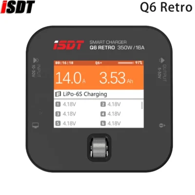 ISDT Q6 Retro 350W 16A DC Lipo Battery Balance Charger Discharger for 2-6S Digital Battery Li-Po Li-Hv Li-Ion Li-Fe NiMH Ni-Cd