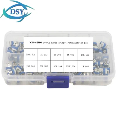 100Pcs/Set Box RM065 Carbon Film Horizontal Trimpot Potentiometer Assortment Kit 10Values Variable Resistor 500R 1K 2K 5K 10K~1M