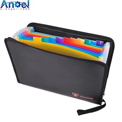 Portable Fireproof Water Resistant Document Bag Large Capacity Money File Folder Safe Bag with A4 Size 12 Pockets Zipper Closure