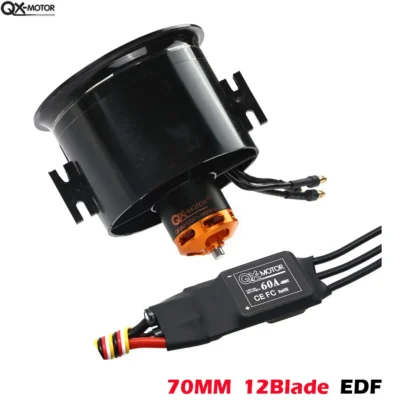 QX-Motor 70mm EDF 4s 6s QF2827 Brushless motor 12 Blades Ducted Fan w/ 80A 60A 3-6S Esc for RC EDF Jet Aircraft Airplane