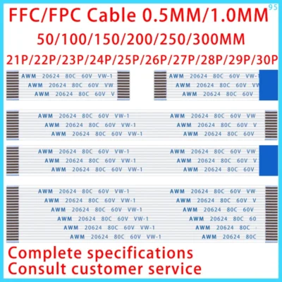 10PCS FPC FFC Cable Ribbon Flexible Flat Cable21P/22P/23P/24P/25P/26P/27P/28P/29P/30P 0.5MM 1.0MM Pitch 50/100/150/200/250/300MM