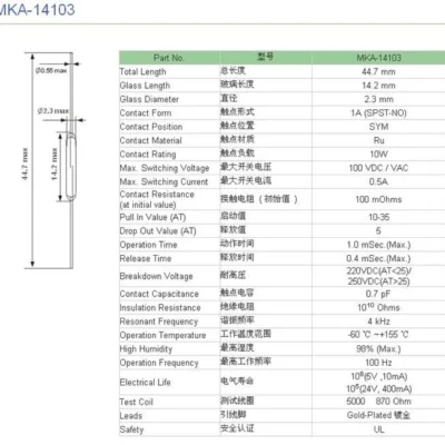 10PCS MKA-14103 Tone Leads Glass N/O SPST Reed Switch 10-15AT 2 x 14mm A
