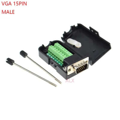 1PCS VGA VGA15 DB15 15PIN 3 ROW male plug connector to screw terminal adapter with black shell D-SUB wire cable free solder diy