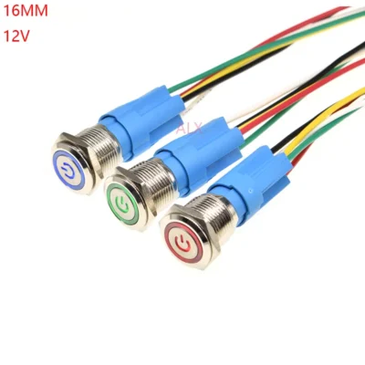 1pcs Waterproof Metal Power Push Button Switch With Led Light 12v Red Blue Green Yellow self-locking Latching on/off