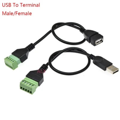 1PCS USB TYPE A Male/Female PLUG TO Screw TERMINAL 5PIN CONNECTOR WITH 25CM WIRE USB ADAPTER USB A TO TERMINAL