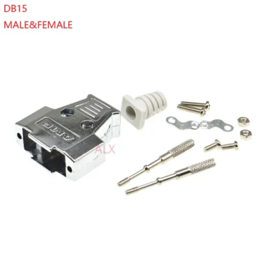 1set DB15 female MALE CONNECTOR + metal shell Solder Type D-Sub CONNECTORS 15 pin plug socket Adapter for DB15 7w2