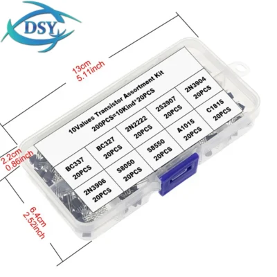 200PCS Transistors Box TO-92 10value Transistor Assortment KIT BC337 BC327 2N2222 2N2907 2N3904 2N3906 S8050 S8550 A1015 C1815