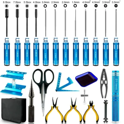 24 in 1 RC Car Tool Kit – Screwdriver Set (Flat / Phillips / Hex) Pliers/Wrench/Reamer Stand Repair Tools for RC Cars Quadcopter