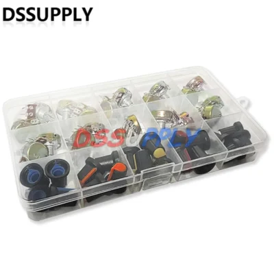 20Sets WH148 15MM Single Potentiometer Kit B1K B2K B5K 10K/20K/50K/100K/250K/500K/1M,With White, Blue Yellow Orange Red Knob Set