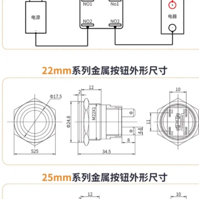 22mm high-current metal push-button switch with light, power start button, reset button, self-locking and waterproof