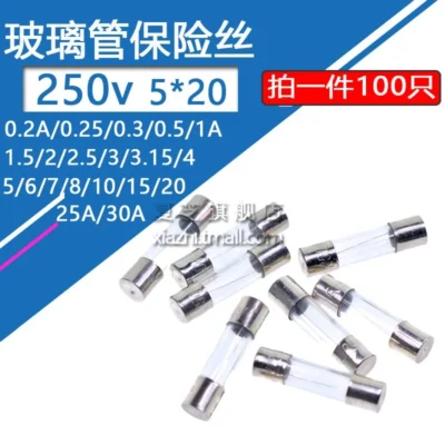 100pcs 5*20 0.2A 0.25A 0.3A 0.5A 1A 1.5A 2A 2.5A 3A 3.15A 4A 5A 6A 7A 8A 10A 15A 20A 25A 30A Glass Fuse Fast Fuse 5x20mm