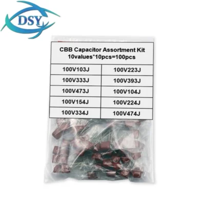 100PCS CBB 100V 10nF – 470nF Capacitor Assortment KIT CBB Polypropylene Film Capacitor 103 223 333 393 473J 104 154 224 334 474J