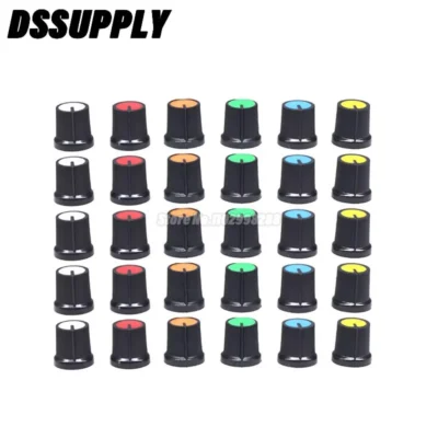 6Value*5PCS=30PCS WH148 AG3 Potentiometer Knob Cap 30PCS White Blue Green Orange Red Yellow 15*15MM Plastic Knobs Kit