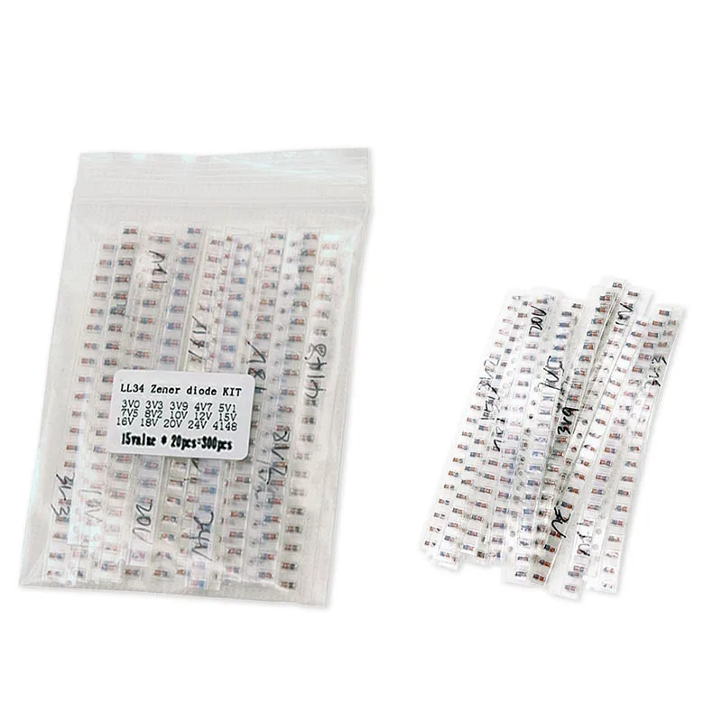 1/2W Zener Diode KIT ZMM3V3 3V0 3.3V 3V9 4V7 5V1 7V5 8V2 10V 12V 15V 16V 18V 20V 24V LL34 1N4148 15Values*20pcs=300PCS Pack Set