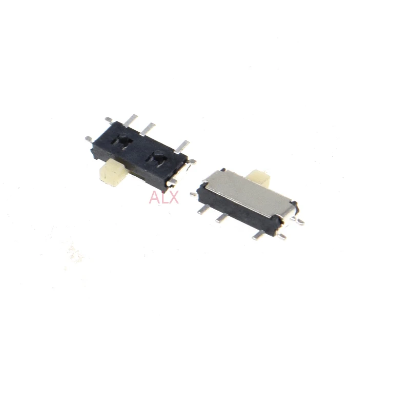 Easy structure, mini body, 7 Pins (3 Pins+4 Terminals), 1 pole 2 position, sliding knob sctuator.