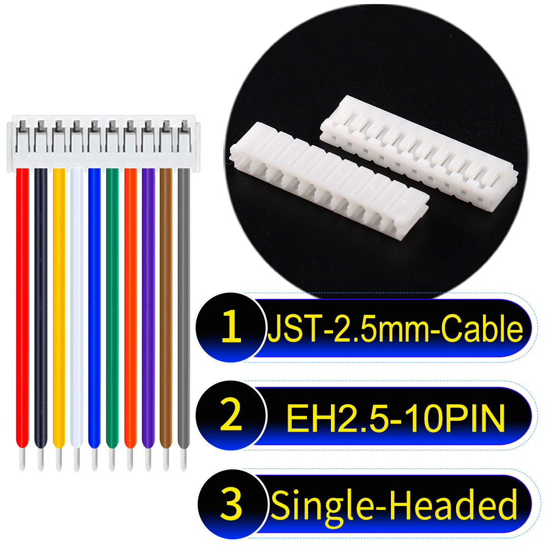 JST 2.5mm Cable EH2.5 10-Pin Single-Headed 22AWG UL1007 PVC Cable