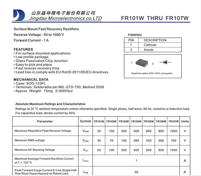 Be the first to review “100pcs FR107W 1206 SOD-123FL F7 SMD Fast Recovery Rectifiers Ultra-Thin New Original 1N4007W A7 1N4148W T4 1N5819W S4” Cancel reply