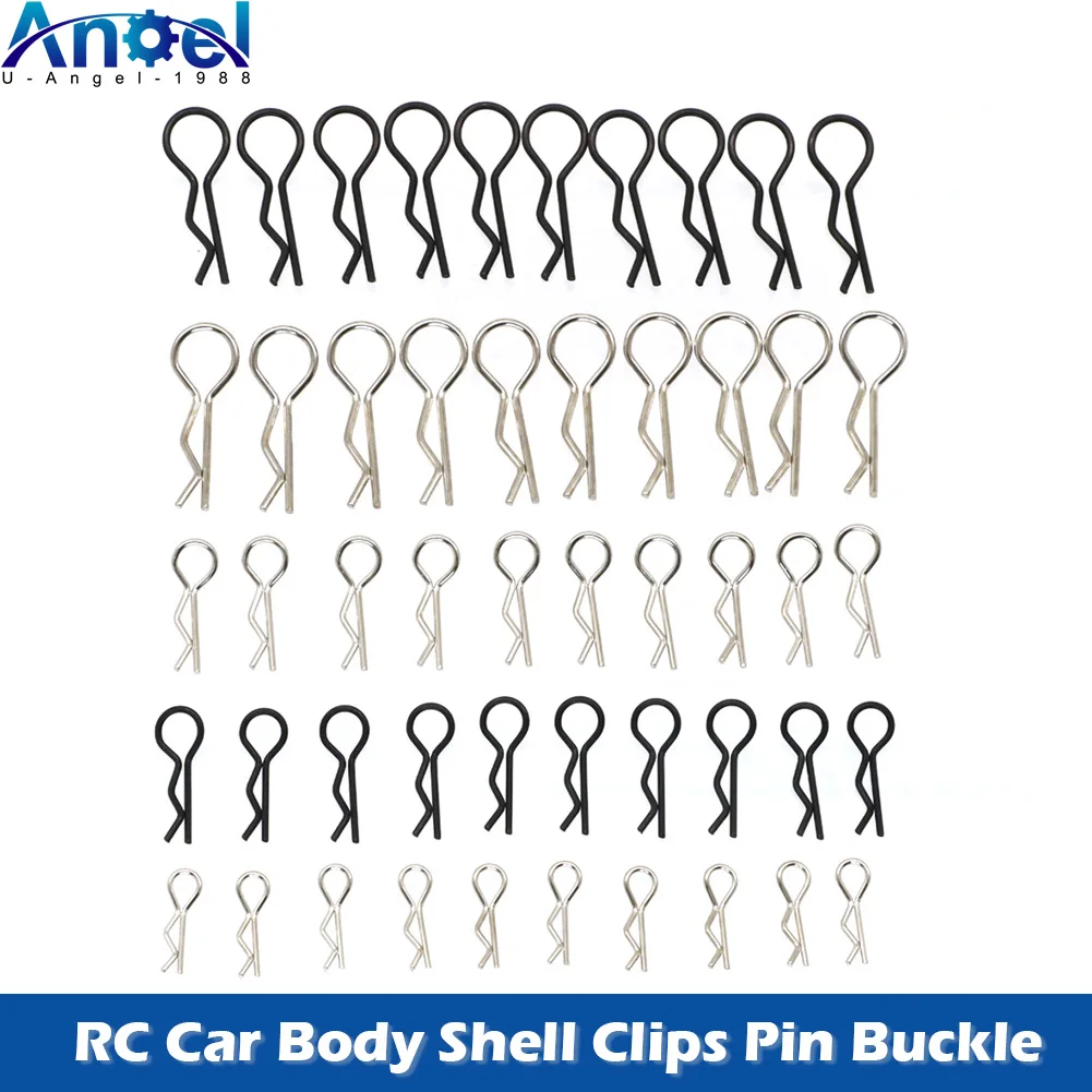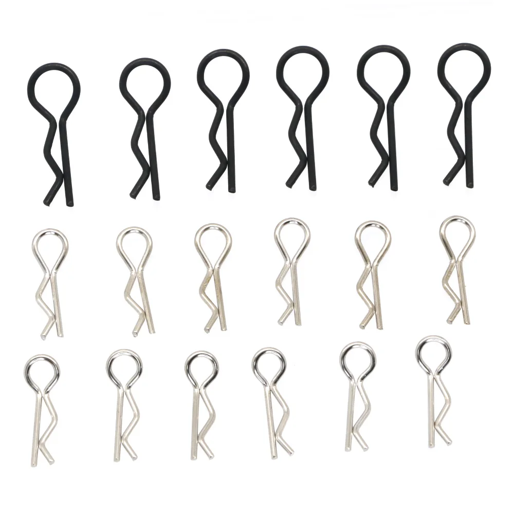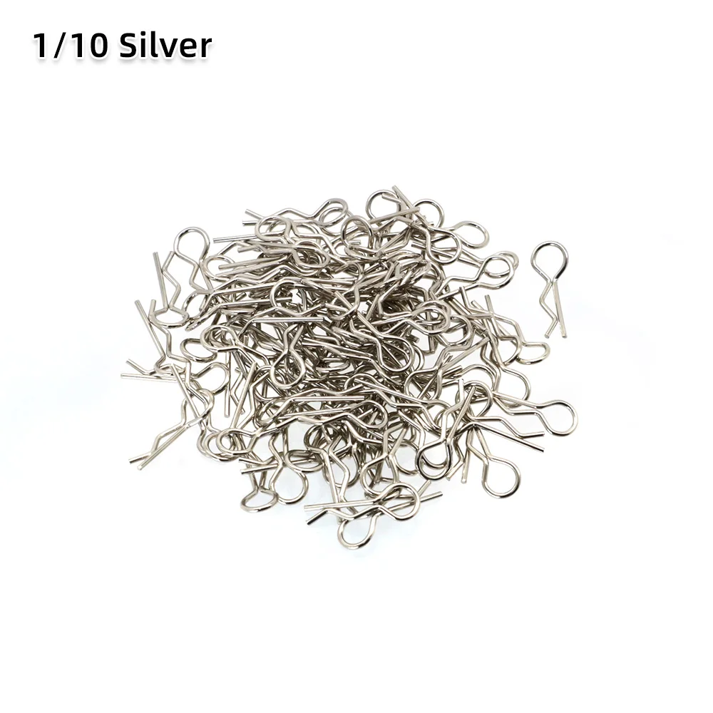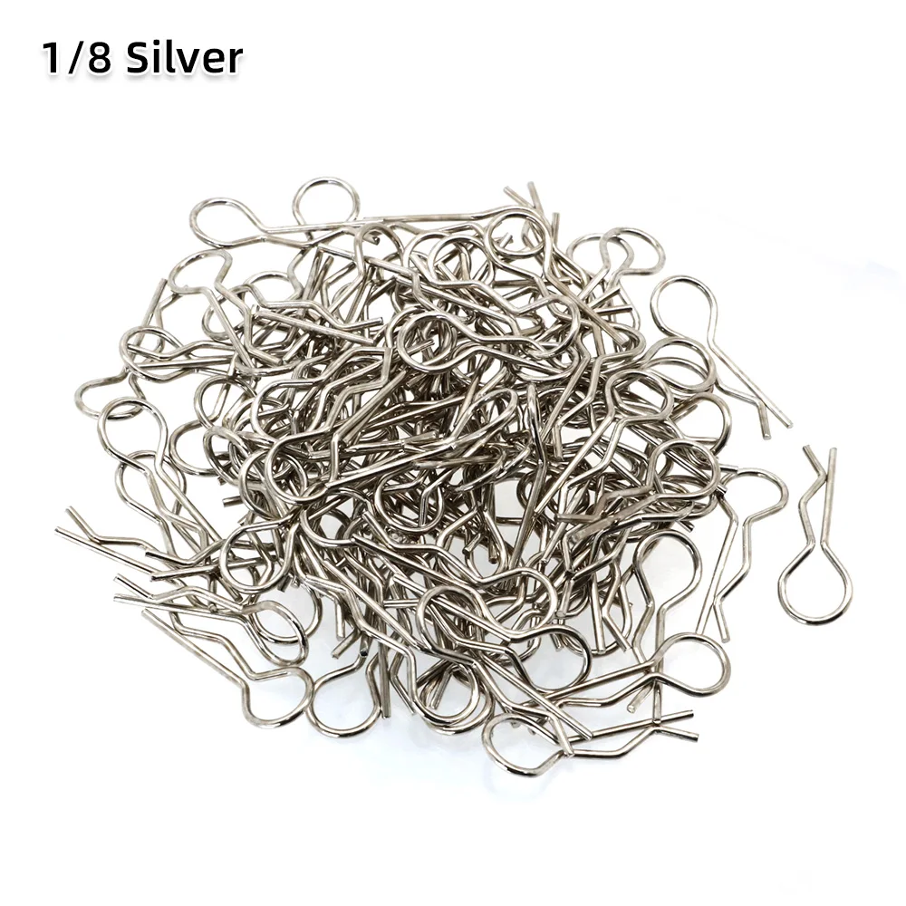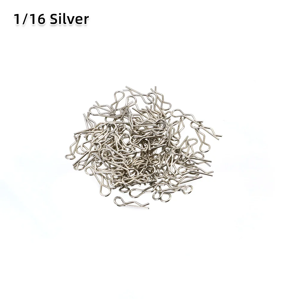 50/100-Pack pins, great replacement clips for RC car fans. Bend designed, offer easier removal than standard clips. Wide application, Universal clips for 1/7 1/8 1/10 1/12 1/14 1/16 1/18 Scale RC Vehicles. Great for body shell posts, wings, battery holders.