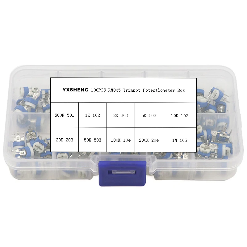 100Pcs/Set Box RM065 Carbon Film Horizontal Trimpot Potentiometer Assortment Kit 10Values Variable Resistor 500R 1K 2K 5K 10K~1M