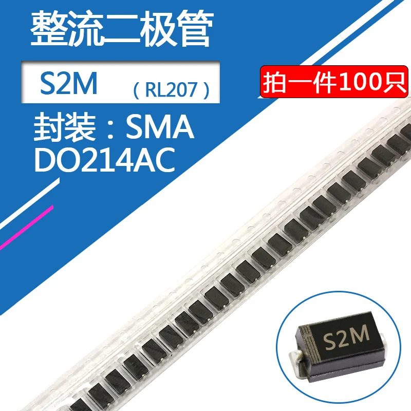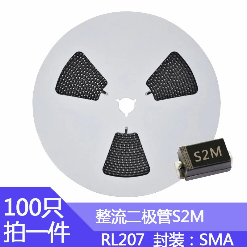 100pcs SMA S2M Rectifier Diode SMD Package DO-214AC 2A/1000V 2A/1000V RL207
