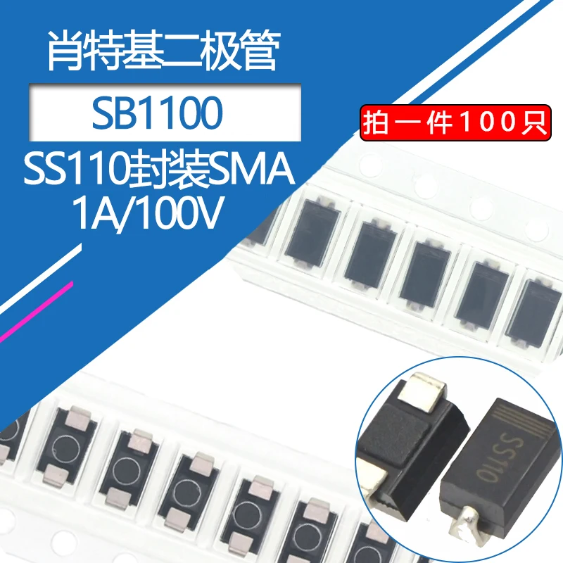 100pcs SS110 SMD Diode 1A/100V Schottky Diodes SMA Package Type A DO-214AC Model SB1100