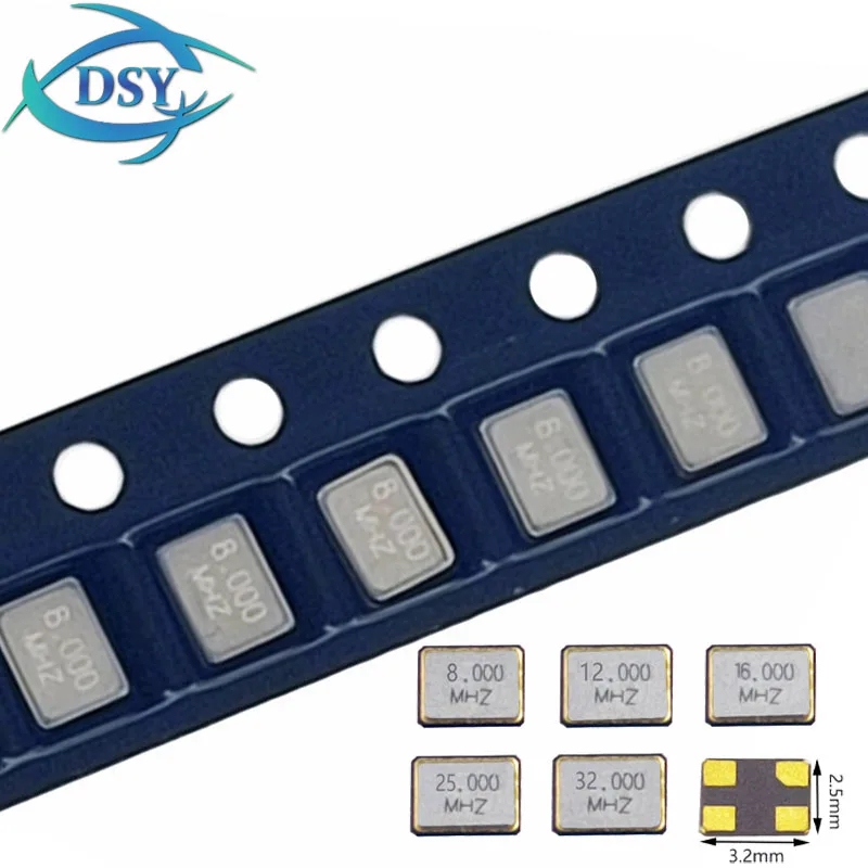 10PCS 3225 3.2X2.5mm 8Mhz 12Mhz 16Mhz 20Mhz 24Mhz 25Mhz 26Mhz 27Mhz 30Mhz 32Mhz Passive Quartz Crystal Oscillator SMD 3.2*2.5mm