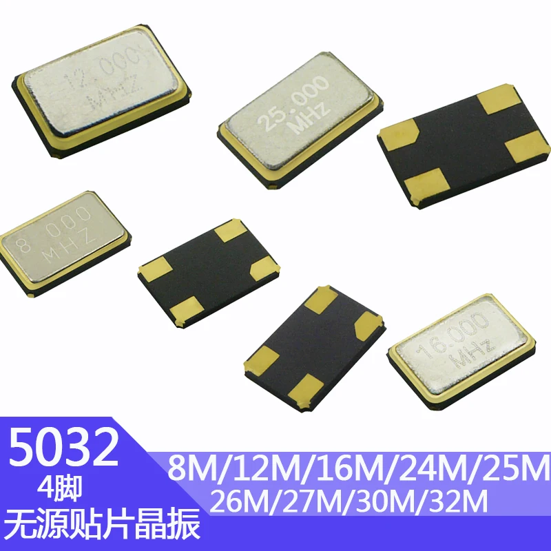 10pcs 5032 4Pin Passive Crystal Oscillator SMD Series Kits 5.0*3.2mm 8 12 16 24 25 26 27 30 32 M MHz 8MHz 12MHz 16MHz 24MHz 25M