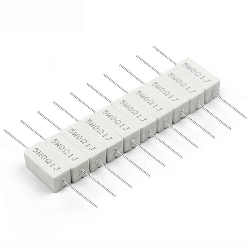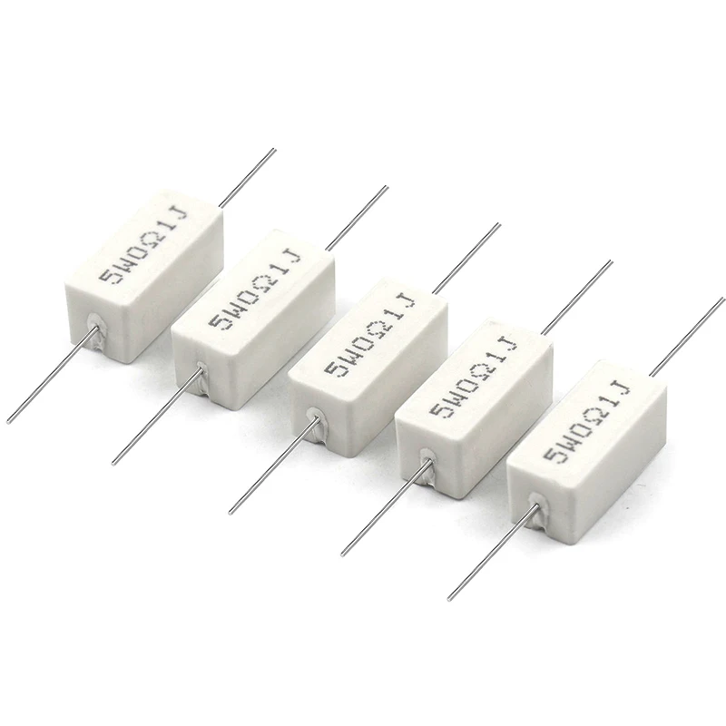 10PCS 5W Cement Resistor 0.1R ~ 10KΩ Ohm 0.1R 0.22R 0.25R 0.33R 0.5R 1R 10R 100R 0.22 0.33 1 10 100 1K 10K Ohm Cement Resistance
