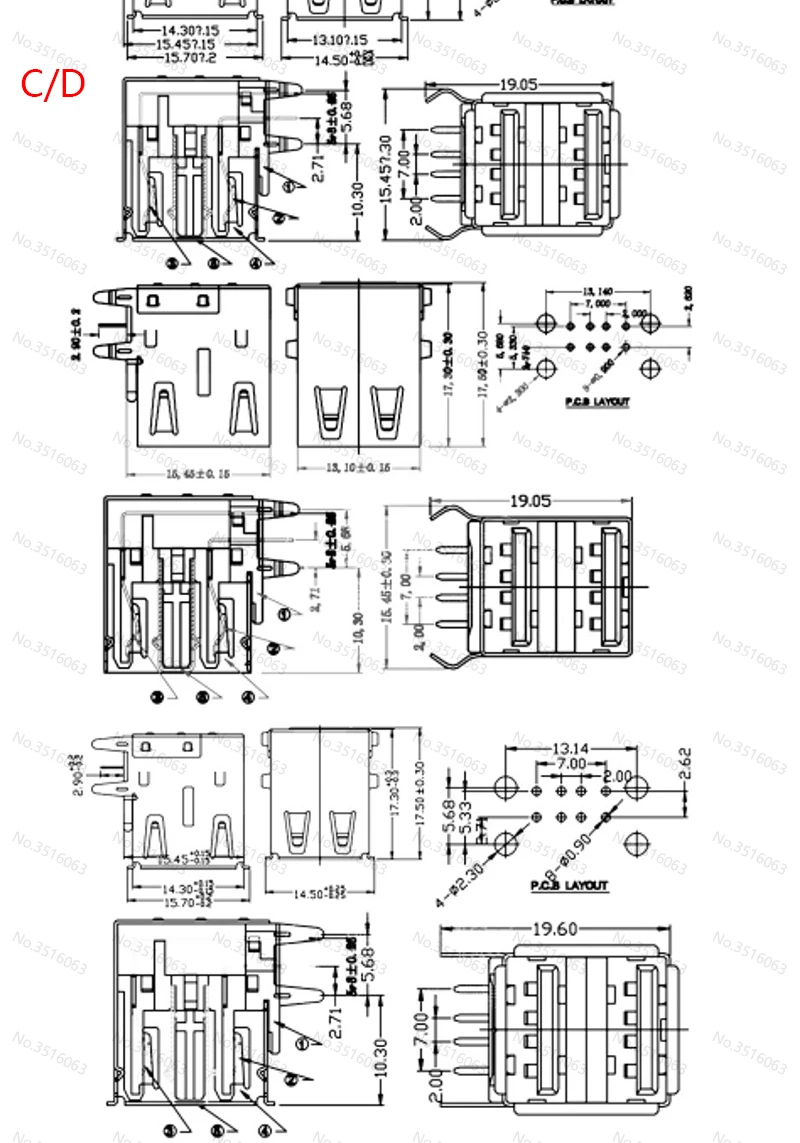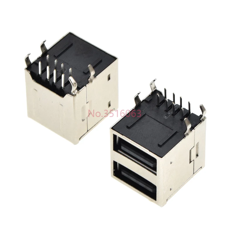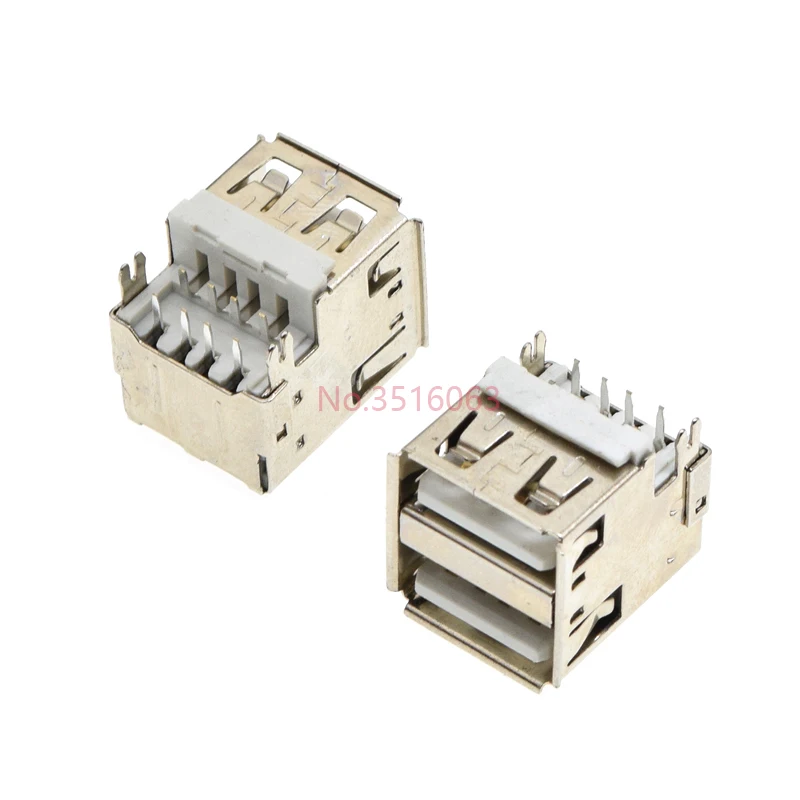 10pcs Double Usb Type A Female Solder Jacks Connector Pcb Socket usb-a Type 90 Degrees 4pins 180 Degrees 4pins Right Angle