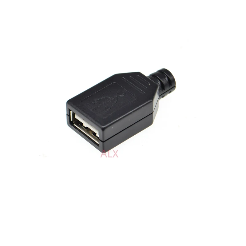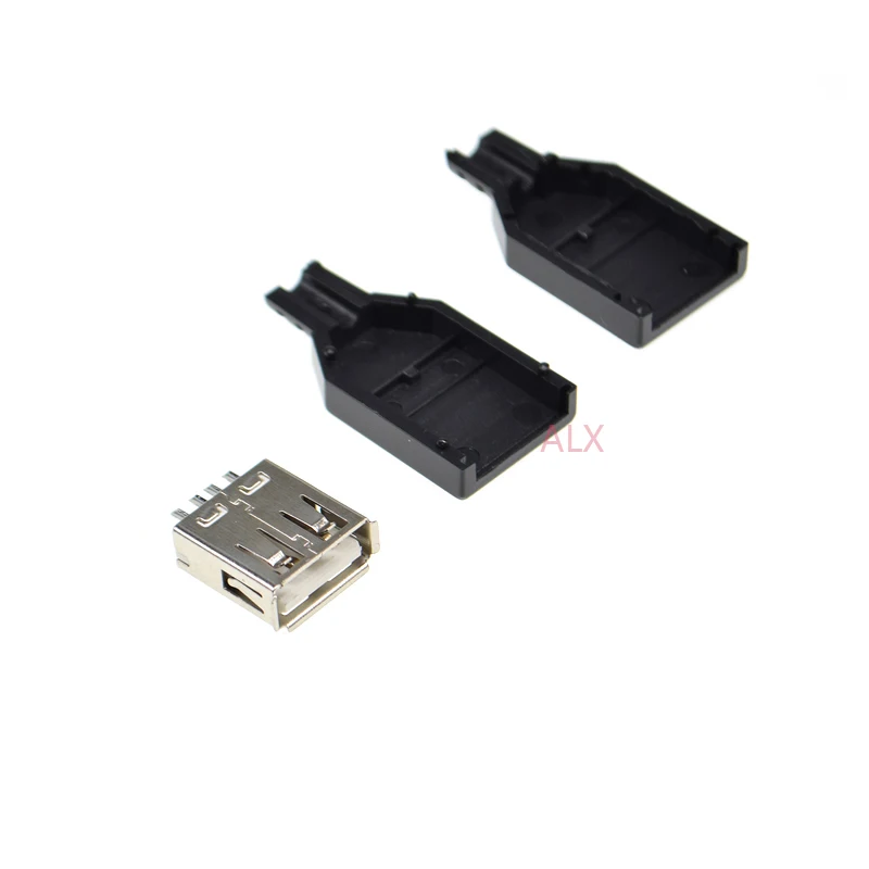 10sets Usb 2.0 Type A 4 Pin Female Plug Socket Connector With Black Plastic Cover Solder Type Diy Assembly Adapter