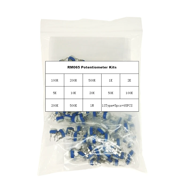 13Type*5pcs=65PCS RM065 Potentiometer Adjustable Kits 100/200/500/1K/2K/5K/10K/20K/50K/100K/200K/500K/1MΩ Resistor