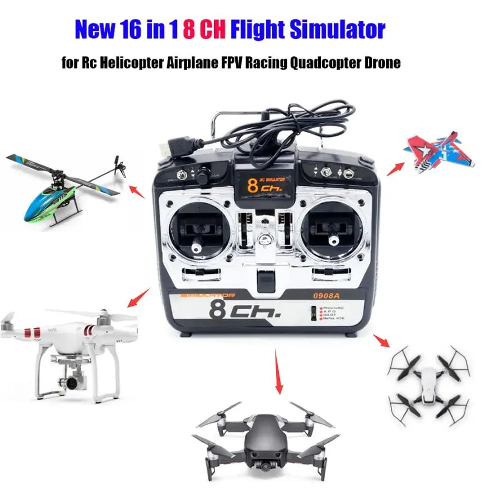 16 in 1 8CH Flight Simulator for Rc Helicopter Airplane FPV Racing Quadcopter Drone JTL0908A Mode 1 or Mode 2