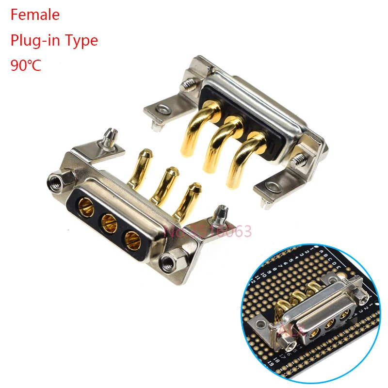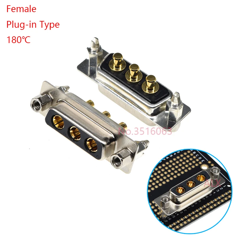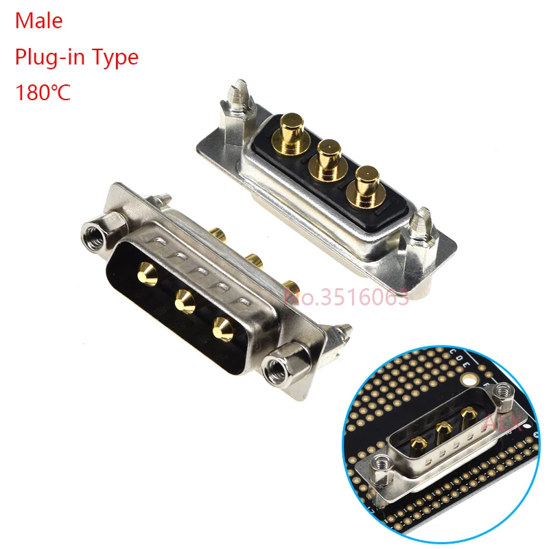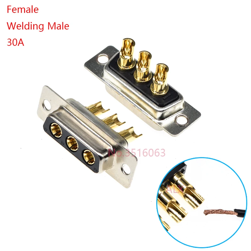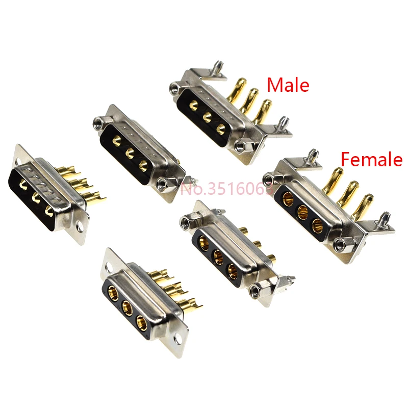 1Pcs 3W3 30A Gold Plated Male Female High Current Power Connector D-Sub Adapter Solder/Plug-in Type 3Pin Plug Jack DB3 Solid Pin