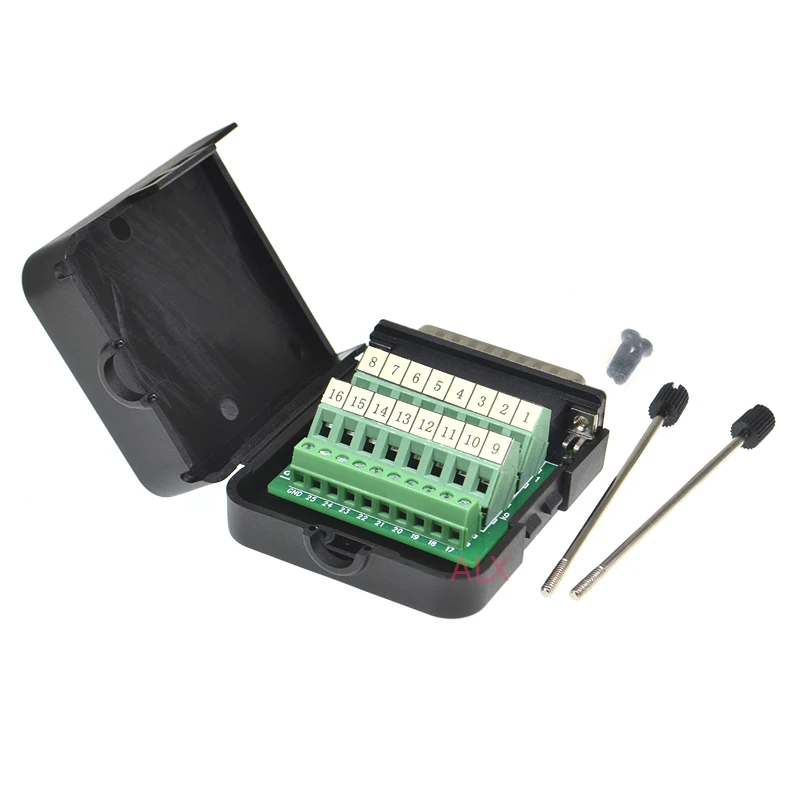 1PCS DB25 25PIN 2 row male plug connector terminal adapter with black shell D-SUB wire cable free solder