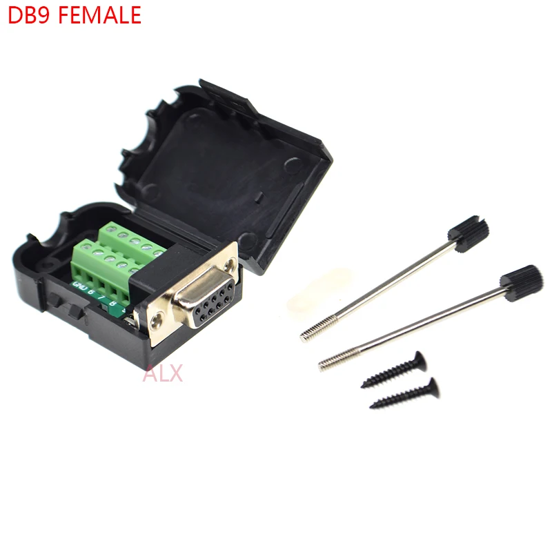 1pcs Db9 9pin Female Plug Serial Port Connector Terminal Adapter With Black Shell d-sub Com Rs232 Rs485 Wire Cable Free Solder