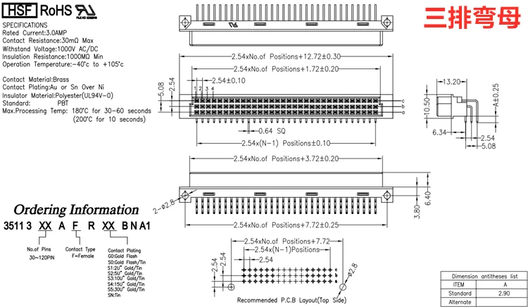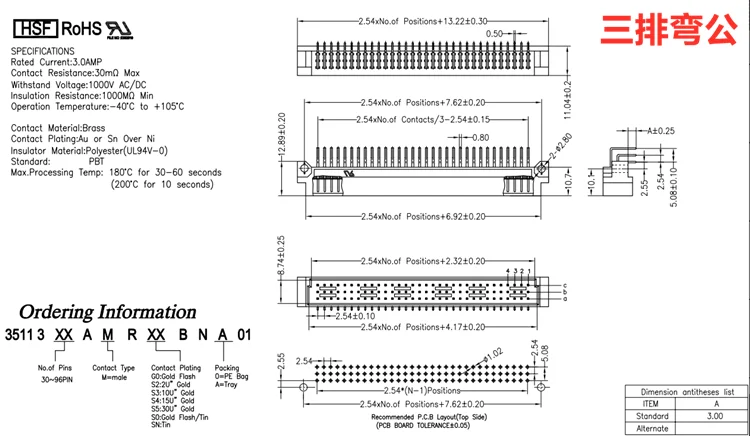 1pcs din 41612 Connector 3 Rows Plug Header Male Female Through Hole 3X32 96 Pin Pitch 2.54 mm 9001 11961 12961 13961 14961