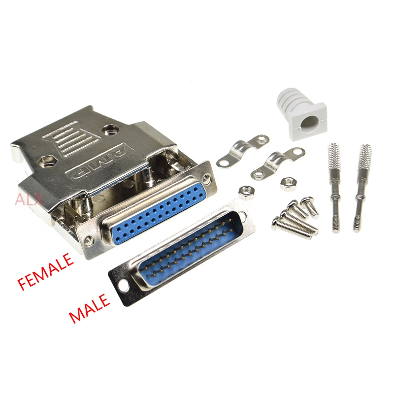 1set DB25 female MALE CONNECTOR + metal shell Solder Type D-Sub CONNECTORS 25 pin plug socket Adapter