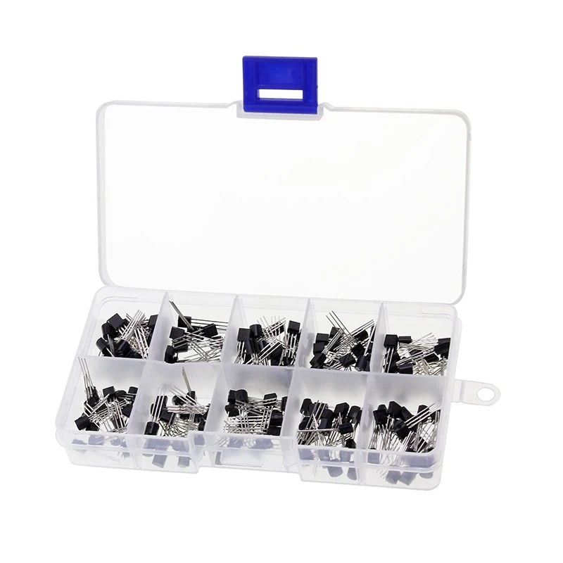 200PCS Transistors Box TO-92 10value Transistor Assortment KIT BC337 BC327 2N2222 2N2907 2N3904 2N3906 S8050 S8550 A1015 C1815