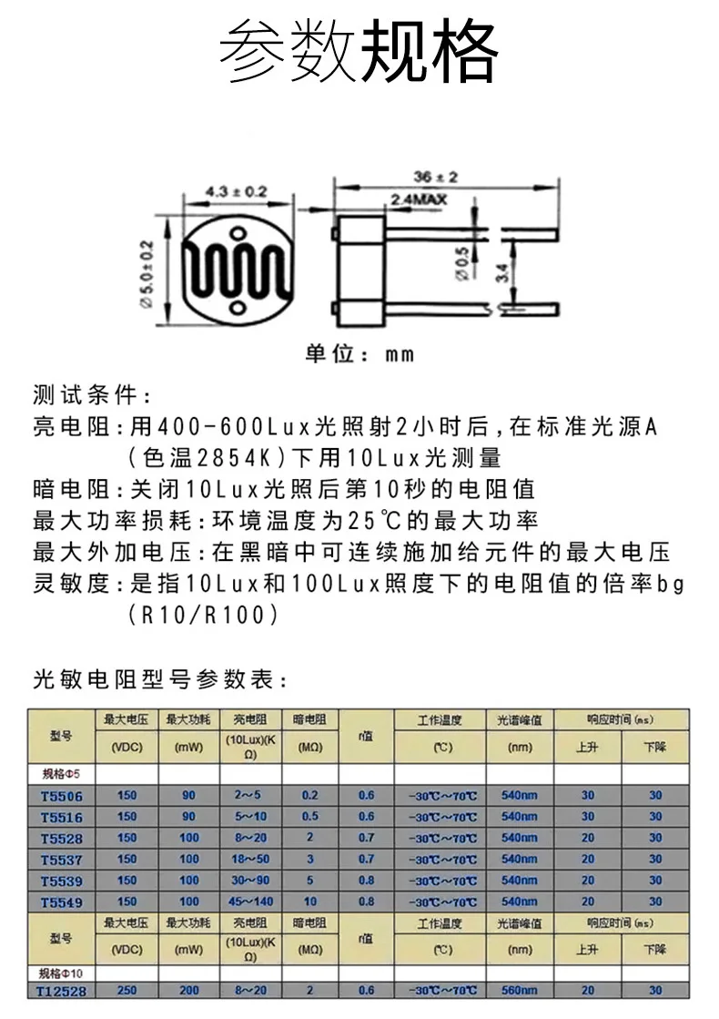 20pcs 5539 5506 5516 5528 5537 5549 Light Dependent Resistor LDR 5MM Photoresistor Wholesale Retail Photoconductive Resistance