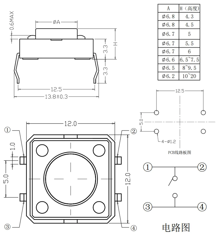 20PCS Tactile Tact Mini Push Button Switch Micro Switch 12×12 12*12*4.3MM 5MM 6 7 8 9 10 11 12 MM 4Pin