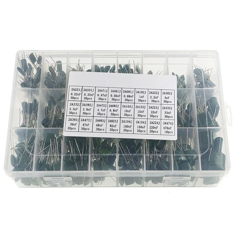 24Value Capacitor KITs 660PCS/Box 100V 0.22nF-470nF Polyester Film Assorted 2A331J 333J 561J 683J 0.33nF 33nF 0.56nF