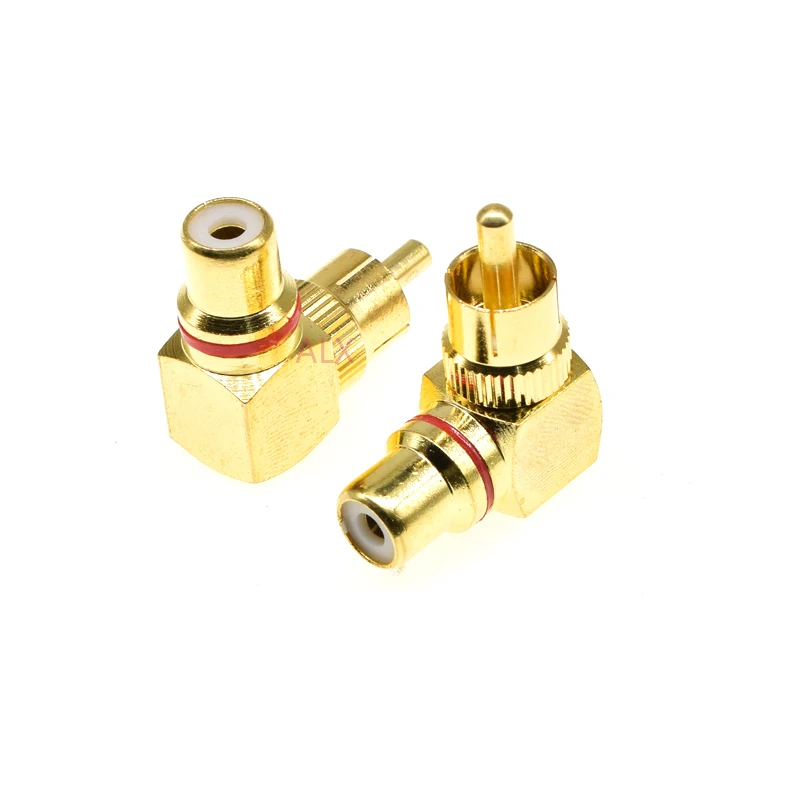 2Pcs Gold Plated Brass RCA Right Angle Male To Female Connector 90 Degree Adapters Connectors plug to jack