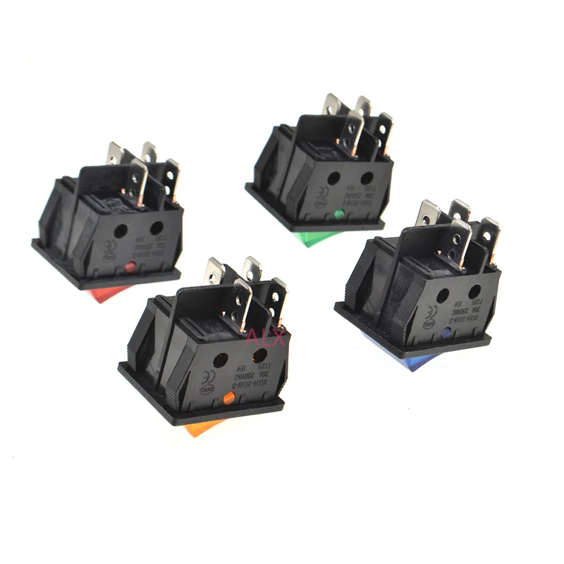 2PCS KCD4 4 PIN Push Button rocker Switch with red blue green yellow led light ON/OFF power switches 30A/250V 25*31MM 25*31