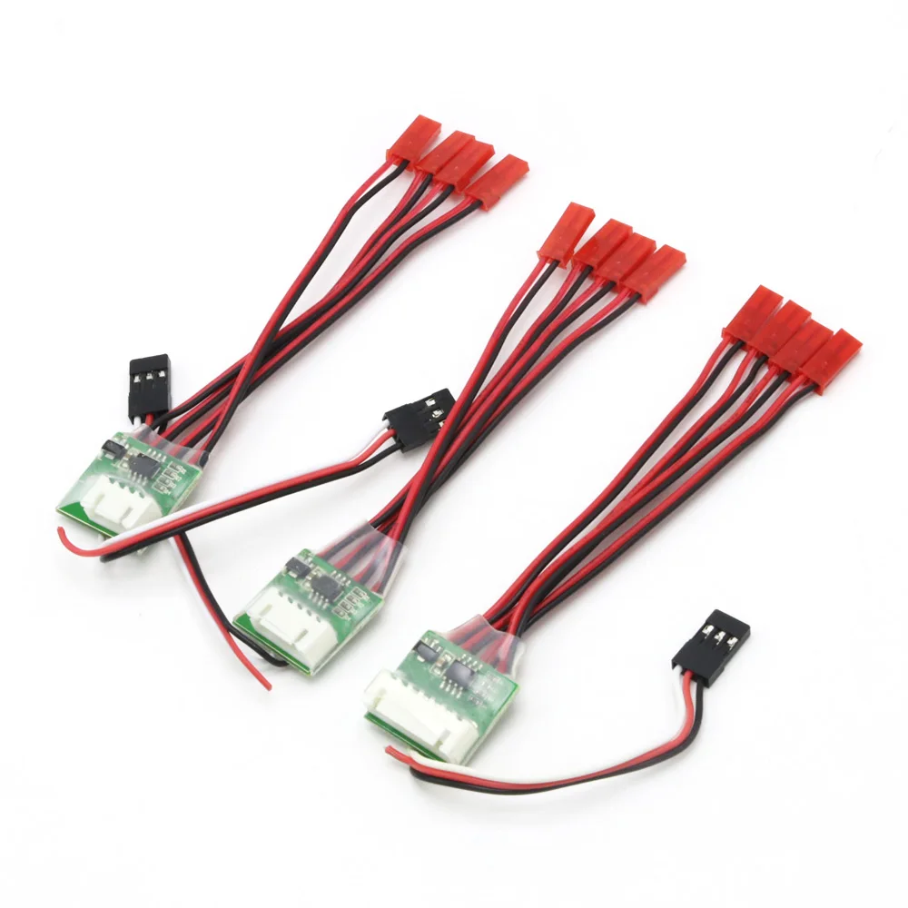 Connection method: the signal line is inserted into the receiver, the JST head is connected to the LED light strip, and then the lithium battery balance charging interface is inserted, and the LED four-way is fully illuminated.