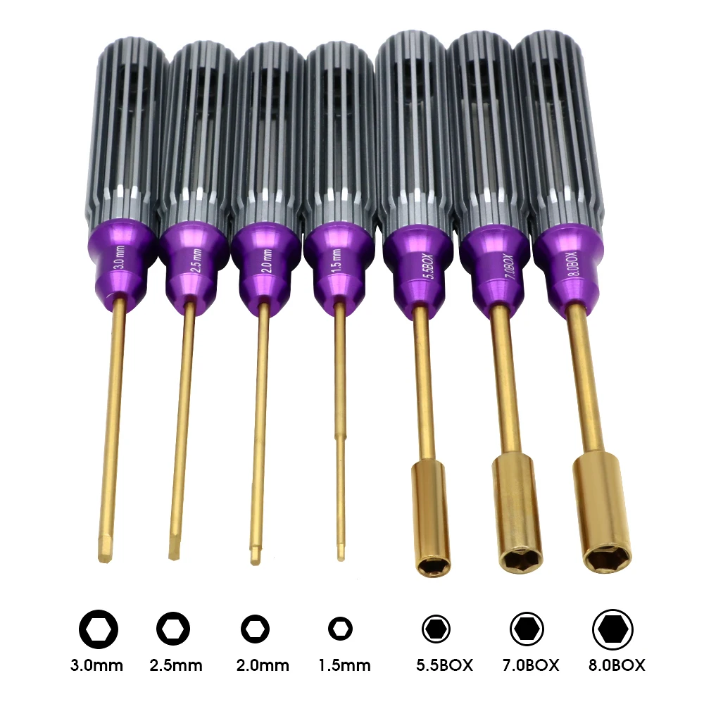4 / 7pcs Hex Space Aluminum Handle Nut Driver Hex Screwdriver Tools Kit For Traxxa Trx4m Axial Scx24 Fms Fcx24 1/18 1/24 Rc Car