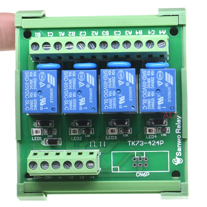 4 Channels relay module DIN Rail Mount SRD-05VDC-SL-C SRD-12VDC-SL-C SRD-24VDC-SL-C 10A 5V 12V 24V DC PNP NPN 1NO 1NC