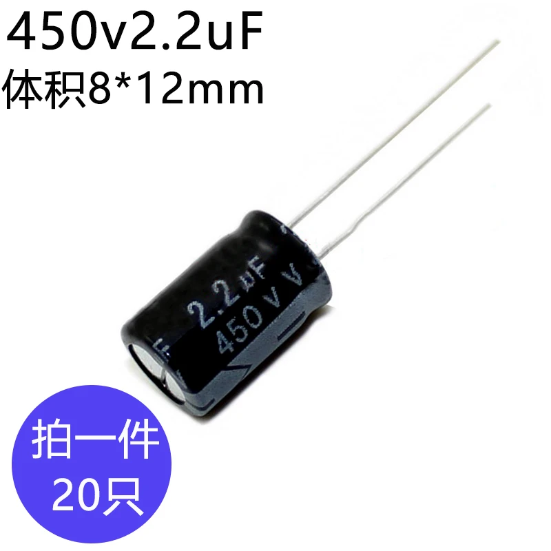 450V2.2UF 8x12mm 2.2uf450v Aluminum Electrolytic Capacitor 450v2.2mf 2.2mf450v 450v2.2MFD 450Volt 450wv 450vdc 450v 2.2uf 3.3uf