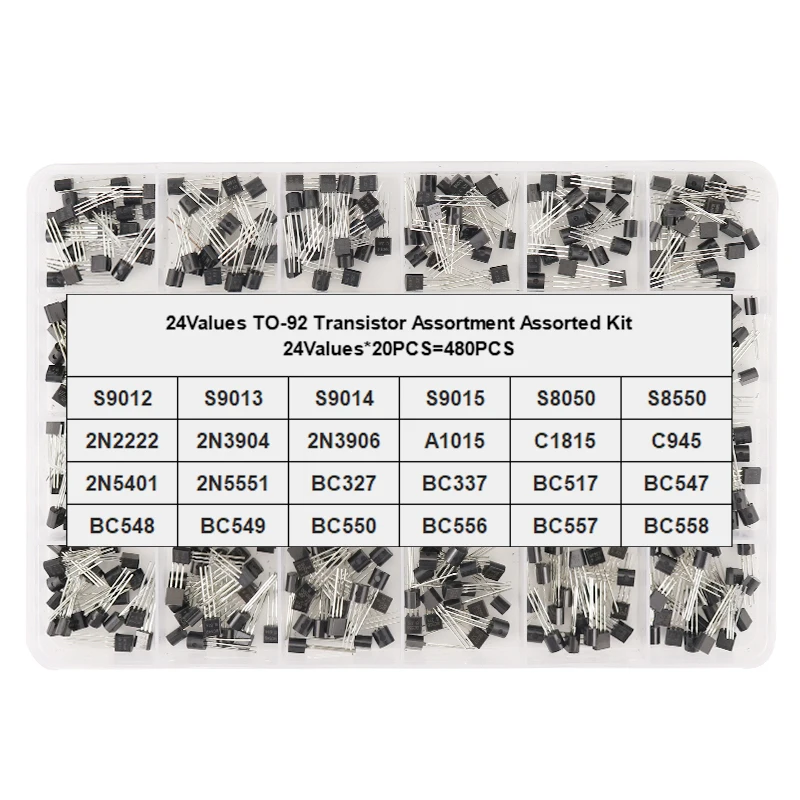 480Pcs/Box BC547 BC548 BC549 2N2222 2N3906 2N3904 2N5401 2N5551 C945 A1015 BC327 24Value TO92 Transistor Assortment Assorted KIT