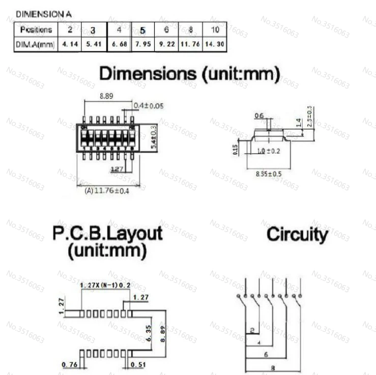 5/10PCS 1.27mm/2.54mm Pitch Slide Toggle Switch Dip/Smd/Right Angle Double Row 1/2/3/4/5/6/8/10/12 Position/Bit/Way/Channel/Pin