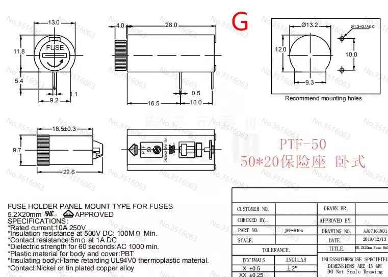 Model Number: 5X20MM FUSE